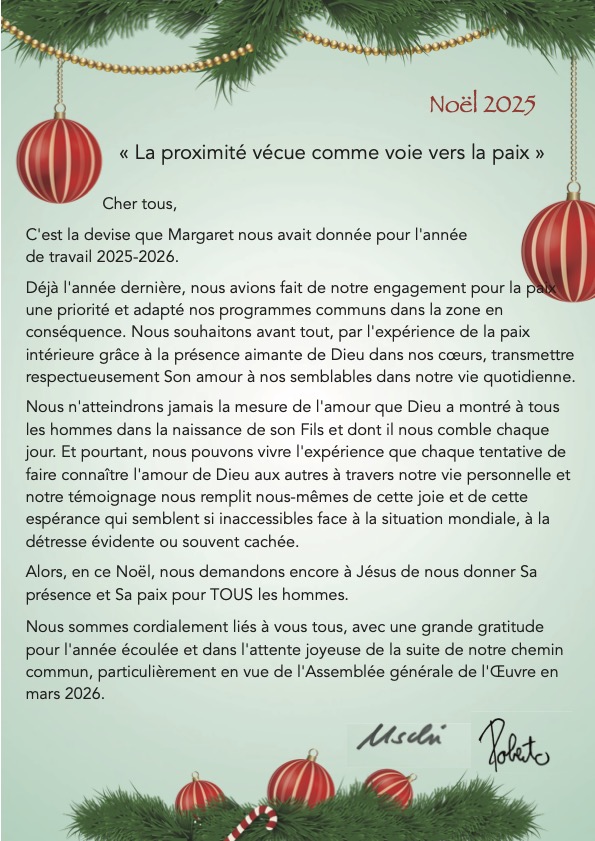 La rédaction de mariapoli.net se joint volontiers à ces vœux : nous vous souhaitons à tous un joyeux Noël et une année 2026 bénie. 19.12.2025 depuis: Ulrike Comes in Centres zone, EU CENTRALE 2 Like Toutes les actualités